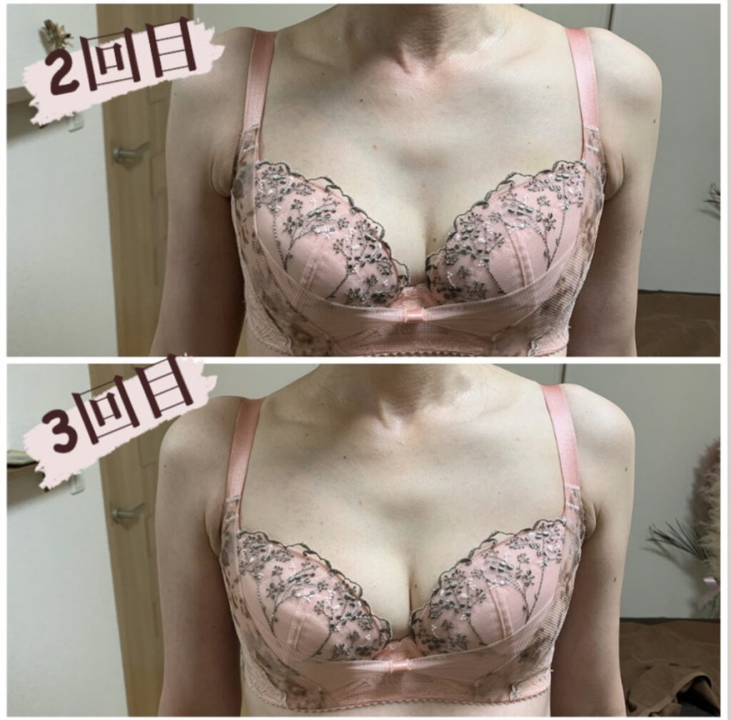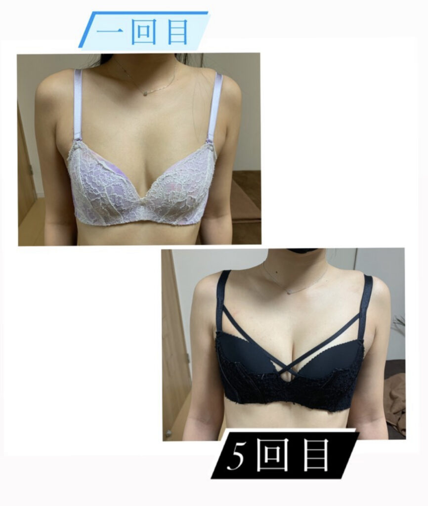 「施術後、バストにハリが戻り、弾力が増したように感じました。バストがふっくらして、見た目が若返った気がします。1回の鍼灸の施術でこんなにもバストが変わると思わなかった!バストの位置も上がりました。」