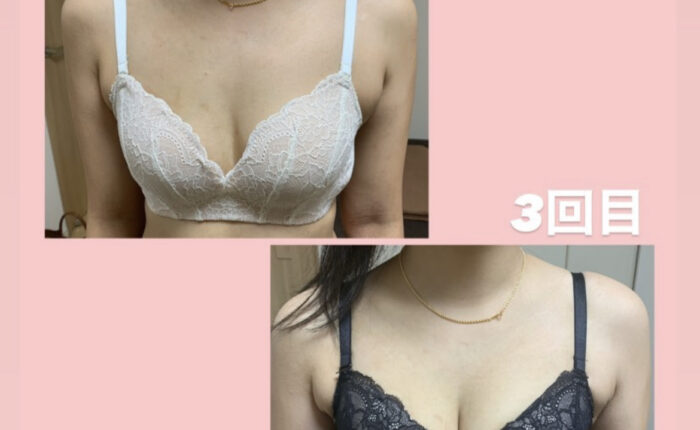 「施術後、バストにハリが戻り、弾力が増したように感じました。バストがふっくらして、見た目が若返った気がします。1回の鍼灸の施術でこんなにもバストが変わると思わなかった!バストの位置も上がりました。」